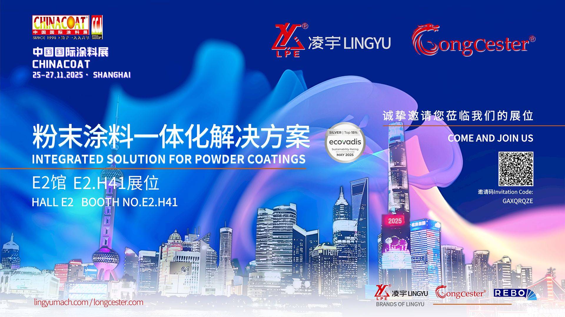 在即將于2025年11月25日至27日舉辦的中國國際涂料展(ChinaCoat 2025)上,上海新國際博覽中心(SNIEC)將再次成為全球涂料行業的焦點舞臺。 凌宇&龍彩將攜最新技術與創新成果亮相E2.H41展位,以獨特的展位設計與豐富的展品展示,吸引來自世界各地行業專家與客戶的關注。 展會期間,凌宇將重點展示其自動化集成生產線、混合機、擠出機、壓片機、磨粉機、邦定機及實驗室設備等核心產品,并提供詳盡的技術資料與應用方案。公司將派出經驗豐富的技術團隊現場答疑,與參觀者深入交流,共同探討粉末涂料生產的最新趨勢與工藝優化方向,挖掘合作新契機。我們誠摯邀請您蒞臨E2.H41展位,共同見證粉末涂料智能制造的新高度。